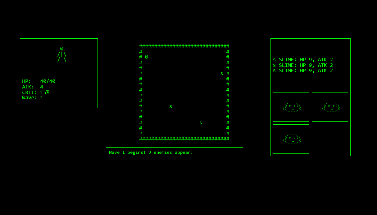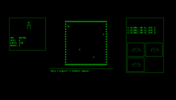 BITS THAT CRITS is a tiny arena roguelike.